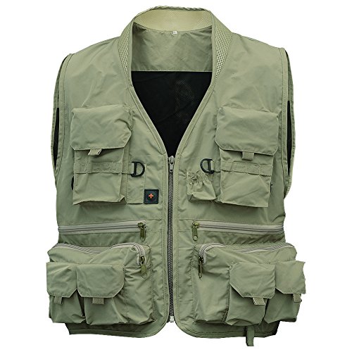 Toprol Fly Fishing Vest Multi-Pocket Waist Coat Fishing Clothes, Army Green, XX-Large