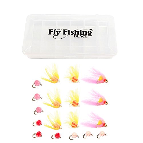 Trout Fly Assortment – Veiled Bead Head Egg and Sparkle Eggs Fly Fishing Flies Collection – Trout Steelhead Wet Fly Fishing Combo Kit – 18 Trout Flies with Fly Box
