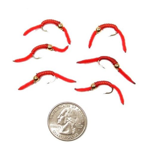 Trout Nymph Fly – San Juan Worm Power Bead 1/2 Dozen Gold Bead Red V-Rib #14 Nymph Wet Flies