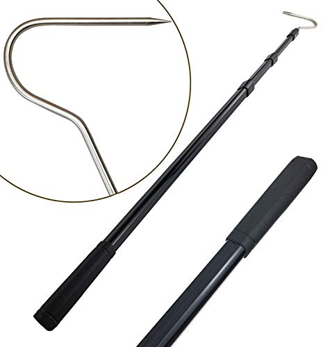 TXXMA Fishing Gaffs Length 37″ to 85″ Telescope Hand Gaff Stainless Steel Hook Retractable Aluminium Handle(Black)