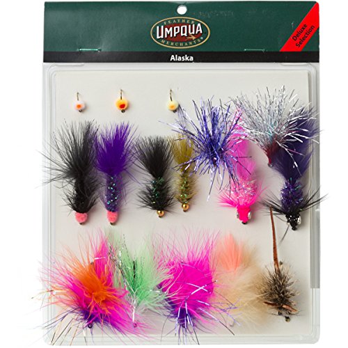 The Umpqua Alaska Deluxe Fly Selection includes one of each of the following patterns: