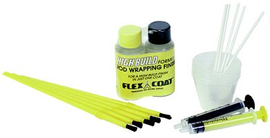 This Super Kit includes 2 oz. Kit Flex Coat Rod Wrapping finish, 2 color coded syringes, 5 finishing brushes, 5 mixing cups, and 5 mixing sticks.