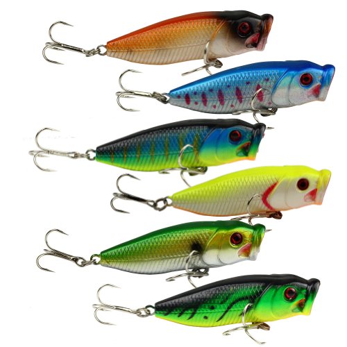 Very100 Lot6pcs 7.5g/6cm Popper Treble Hooks Tackle Fishing Topwater Lures Baits