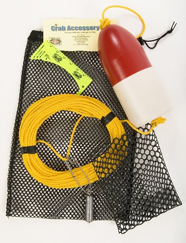 Willapa's Crab Accessory Kit has all the accessories you will need to go crabbing. It comes complete with 100' of 1/4" Twisted Poly Rope, Attached 5"x11"Crab Buoy, Line Weight with Snap, Bait Box, and Crab Gauge.