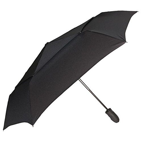 The ShedRain Windjammer Vented Auto Open Compact Umbrella is a serious umbrella when facing windy conditions! The WindPro system is wind-tunnel tested to resist high winds without inversion and is top rated in the industry. Features: -Auto-open, Wind Vented -Type: Compact -Handle Material: Rubber -Shaft Material: Steel -Arc Size: 44" -Closed Length: 13" -Number of Panels: 8