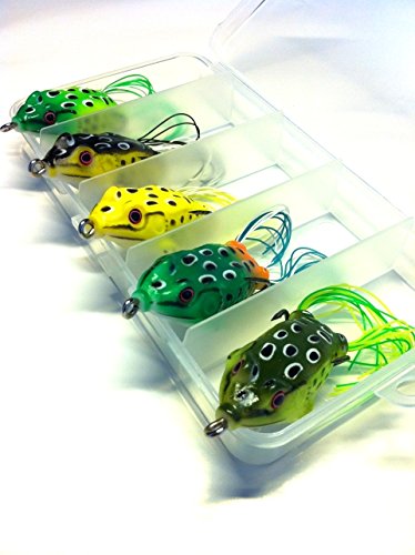 wLure 5 Hollow Body Topwater Frogs Fishing Lures Baits with Free Tackle Box 2 1/5 Inch 3/8 Oz FG43KB