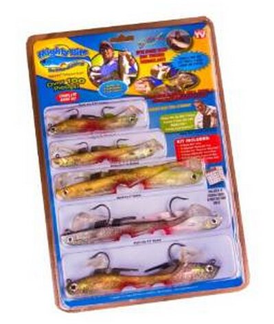 Mighty Bite Fishing Lures. Catch success! Kit creates a powerful scent trail that gets fish to strike. With a 3-D hologram design, Mighty Bite appeals to all 5 senses: sight, sound, smell, feel and taste. Unique "spasmic" action adds the finishing touch. Includes 10 lures, 8 adjustable fins, 4 assorted size rattles, 11 scent sticks, 2 "red" screw-in nose hooks and 2 extra wide gap, plus weed guards, tail weights and locking pin. With Mighty Bite you get a multipurpose lure that looks, smells, sounds, feels, tastes and even swims like a wounded baitfish. Mighty Bite is engineered to ignite a fish's DNA triggered response, causing it to strike, bite hard and get hooked. Order yours today! Mighty Bite Fishing Lures