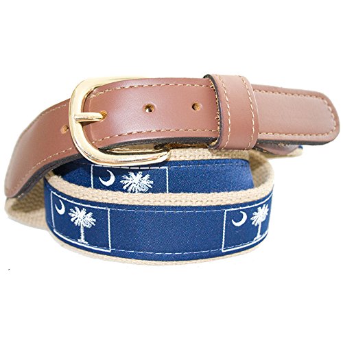 South Carolina state flag design on navy radiant woven ribbon belt.